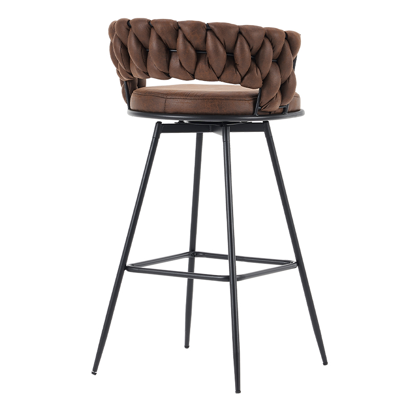Otthon / Prodocuts / Bárszék / Pultszék / Barna, forgatható fém alacsony háttámlájú, zsámolyos fotel (Y-C47)