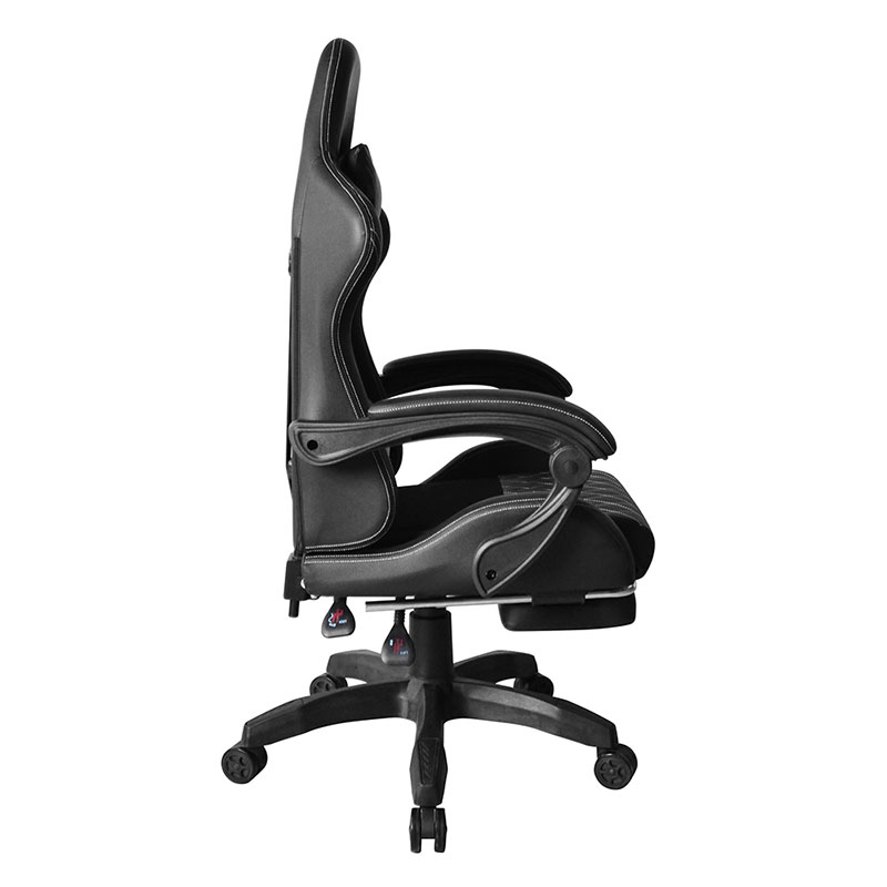 | Anyag | PVC PP állítható kartámasz Fekvő mechanizmus 100 mm-es 3. osztályú gázlift 320 mm-es nylon talp 50 mm-es PU színes görgők Nyak- és derékpárnával Karton: 250 font Lábtartóval RGB fénnyel |