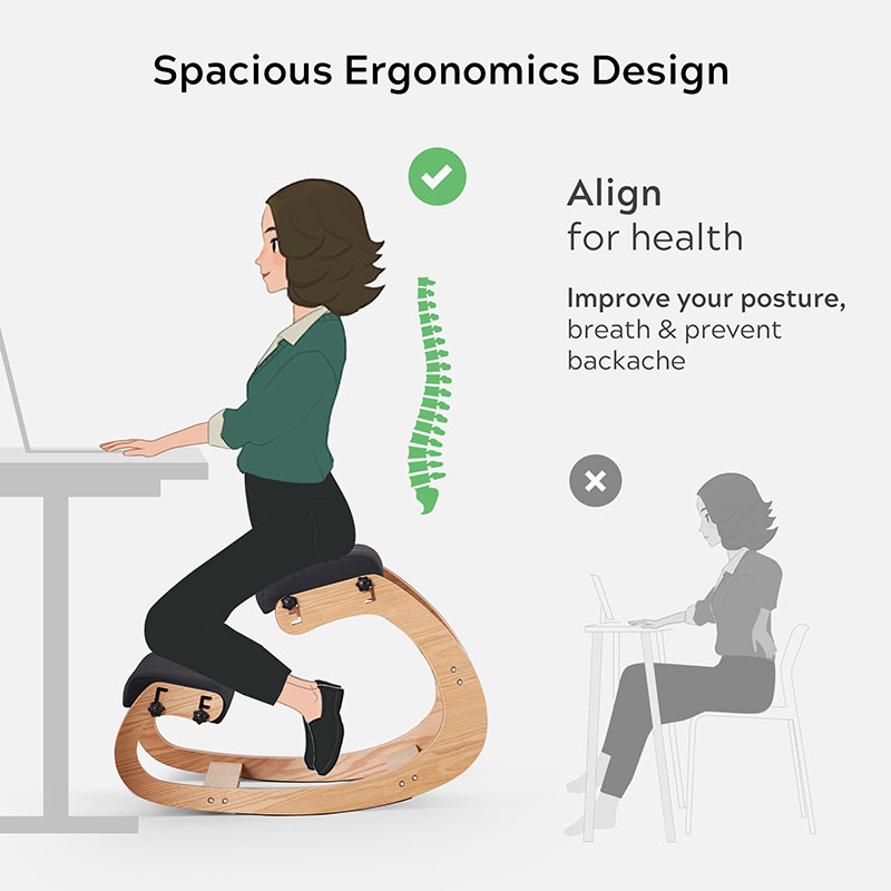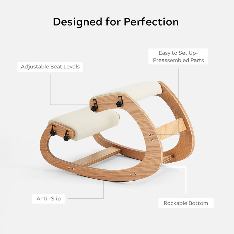 A Kneeling Irodai székben a legszembeötlőbb az egyedi tervezési koncepció. A hagyományos álló vagy dönthető irodai székekkel ellentétben a szék a térdelést és az enyhe ringatást ötvözi, így természetesebb és nyugodtabb testtartásra ösztönzi a felhasználókat. Ez a kialakítás nemcsak hatékonyan csökkenti a gerincnyomást és elősegíti a vérkeringést, hanem bizonyos mértékig enyhíti a hosszan tartó ülés okozta fáradtságot is. A szék ringató funkciója enyhe testmozgás hatását szimulálja, segítve a felhasználókat, hogy észrevétlenül ellazítsák testüket és elméjüket, ezáltal javítva a munka hatékonyságát és kreativitását.