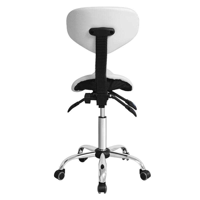 A szék középső háttámlája ergonómikusan úgy lett kialakítva, hogy egyenletes támaszt nyújtson a hátnak, a vállnak és a nyaknak. A nyeregforma lehetővé teszi, hogy a felhasználó testtartással üljön a széken, megelőzve ezzel a megerőltetést vagy kényelmetlenséget.